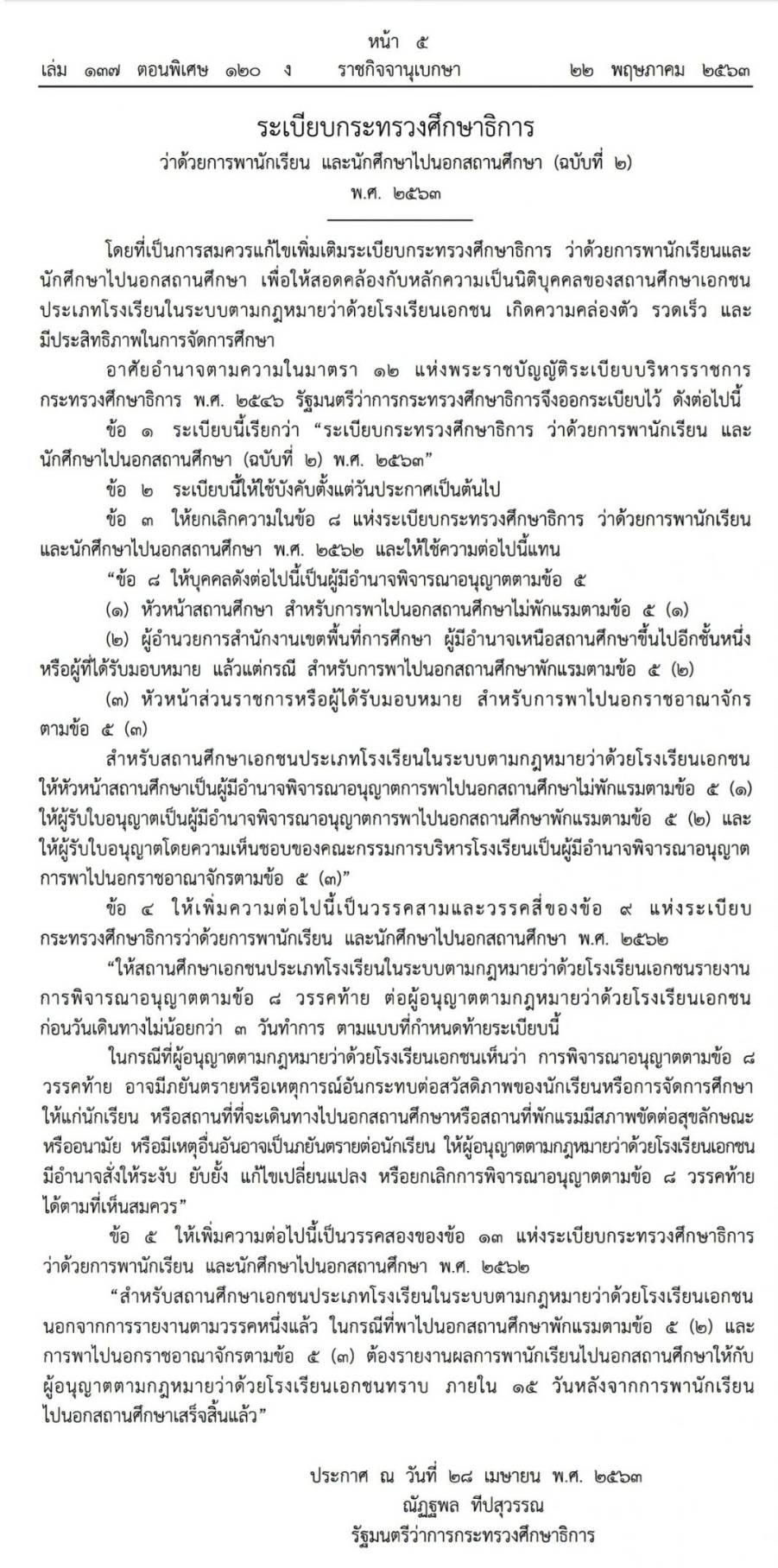 | ประกาศกระทรวงศึกษาธิการ เรื่อง มาตรการในการพานักเรียน และนักศึกษา ไปนอกสถานศึกษาและเดินทางไกล เข้าค่ายพักแรมของลูกเสือ เนตรนารี และยุวกาชาด |