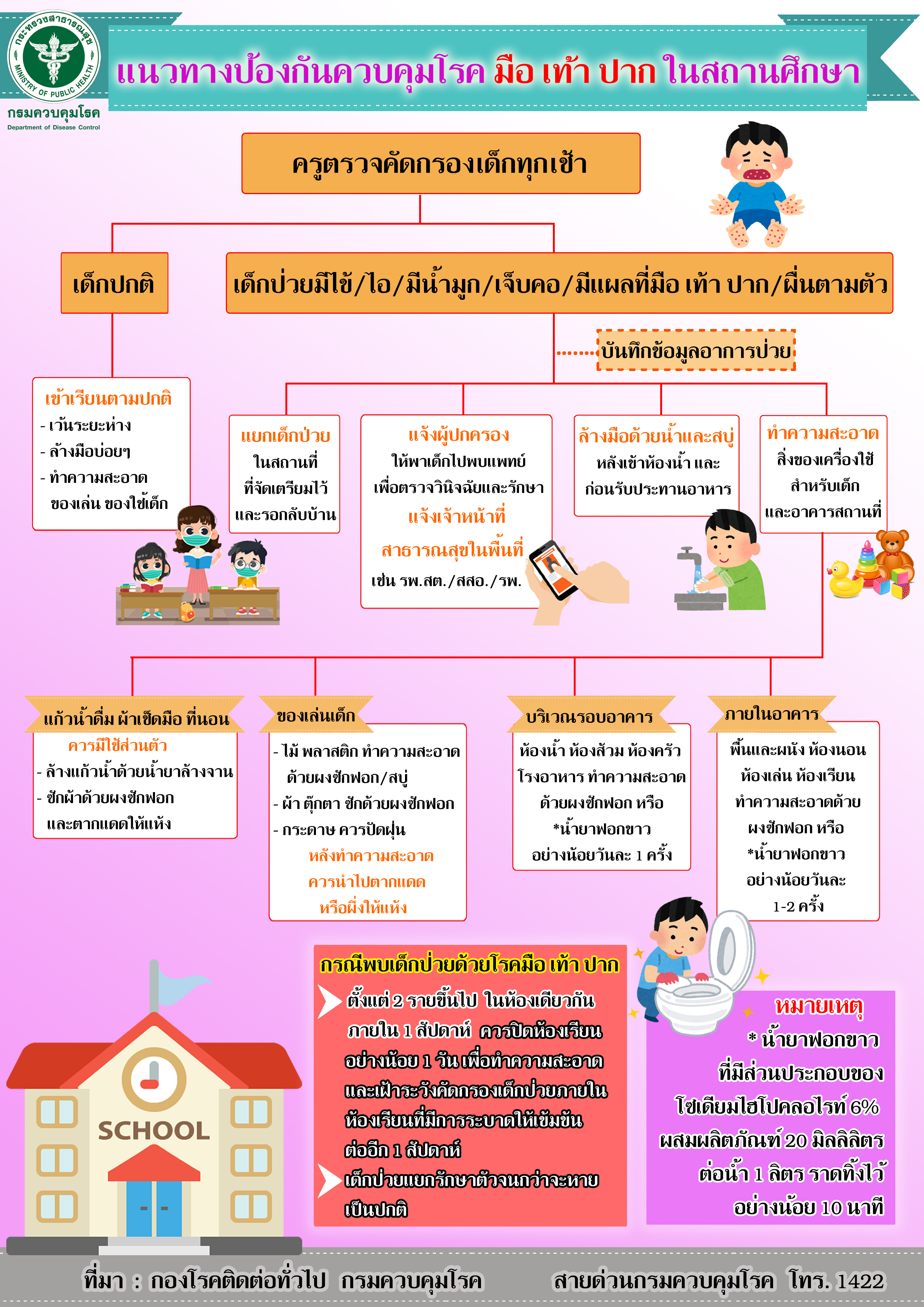 | แนวทางป้องกันควบคุมโรคมือเท้าปากในสถานศึกษา |
